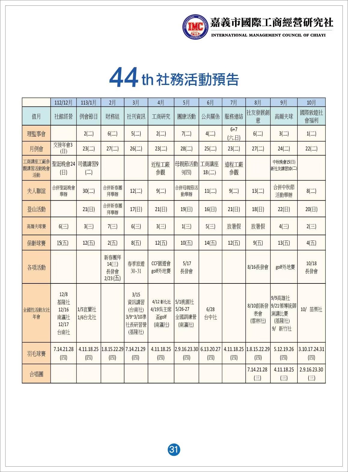 44屆活動預告