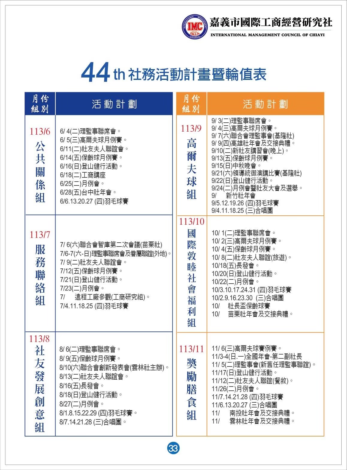 月例會